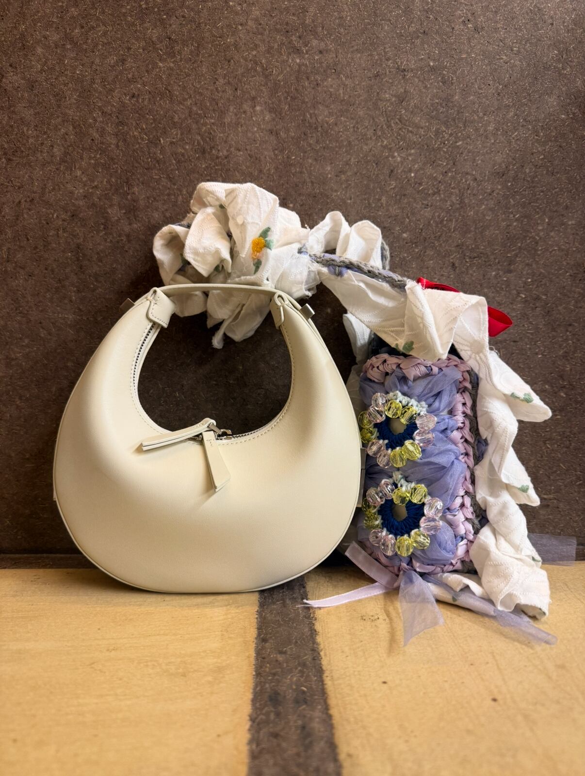 持ち手を結んでハンドバッグなどとレイヤード持ちもおすすめです。