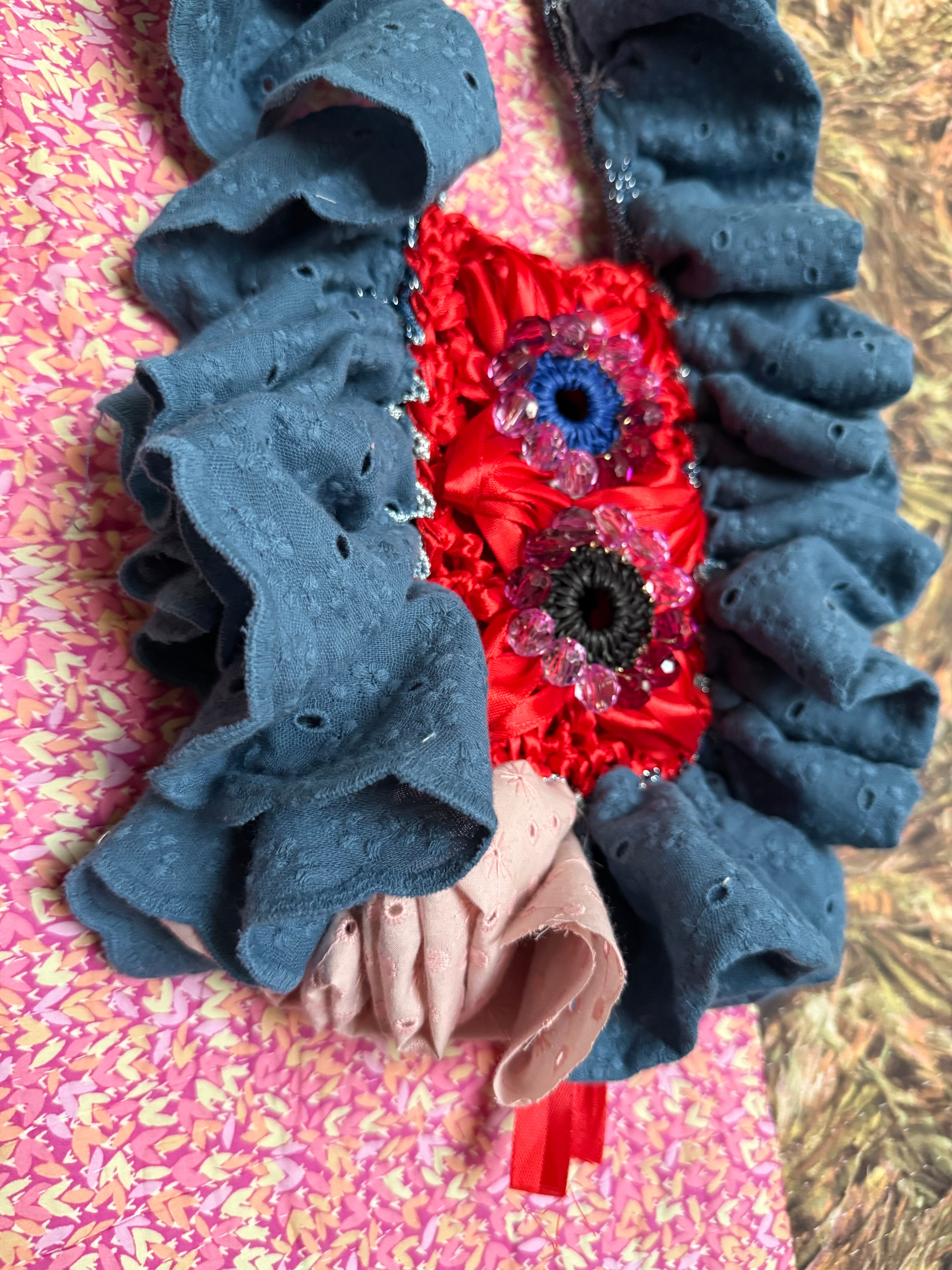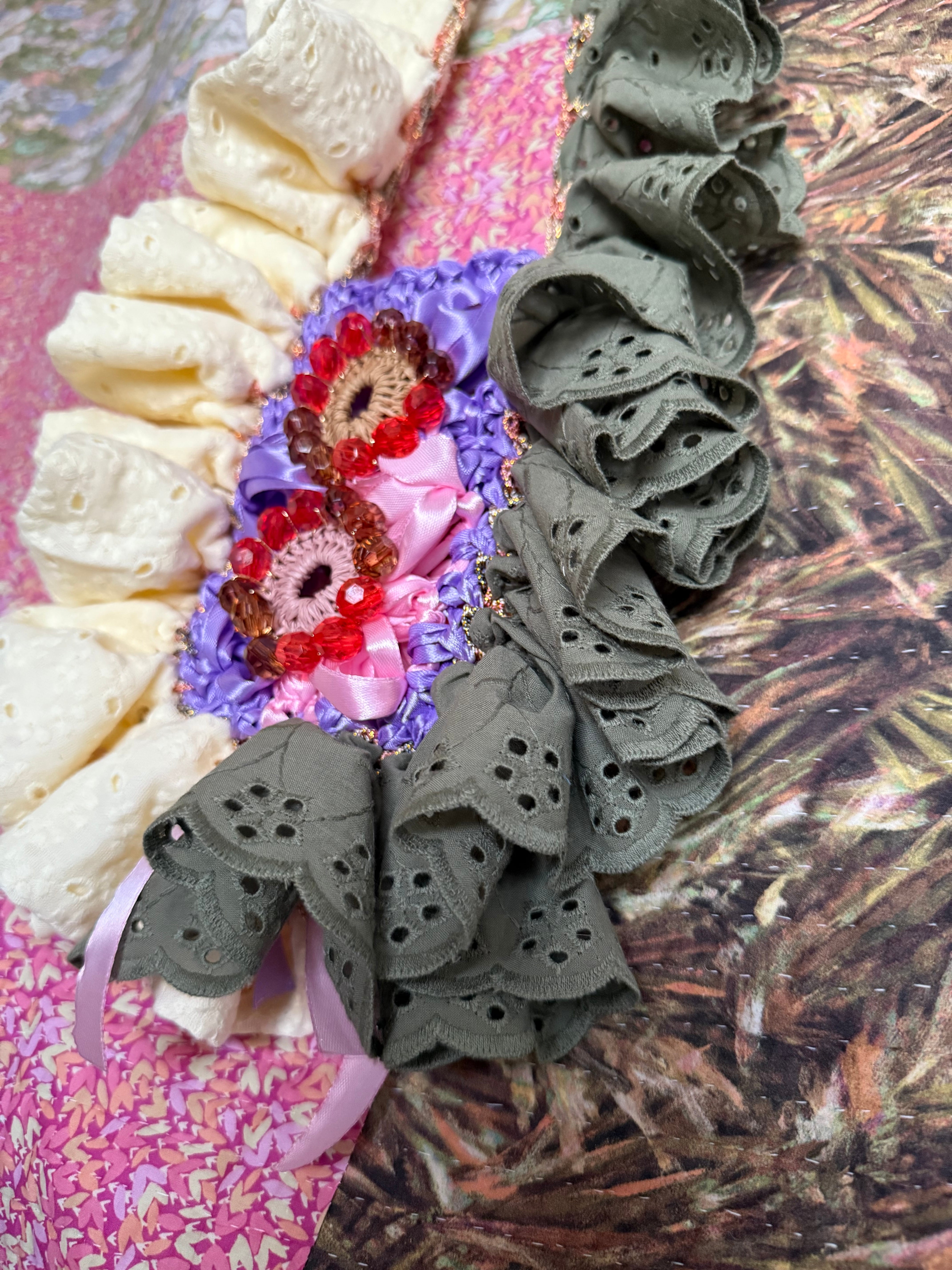 【コットンレースフリル&リボン】knitted beads pochette