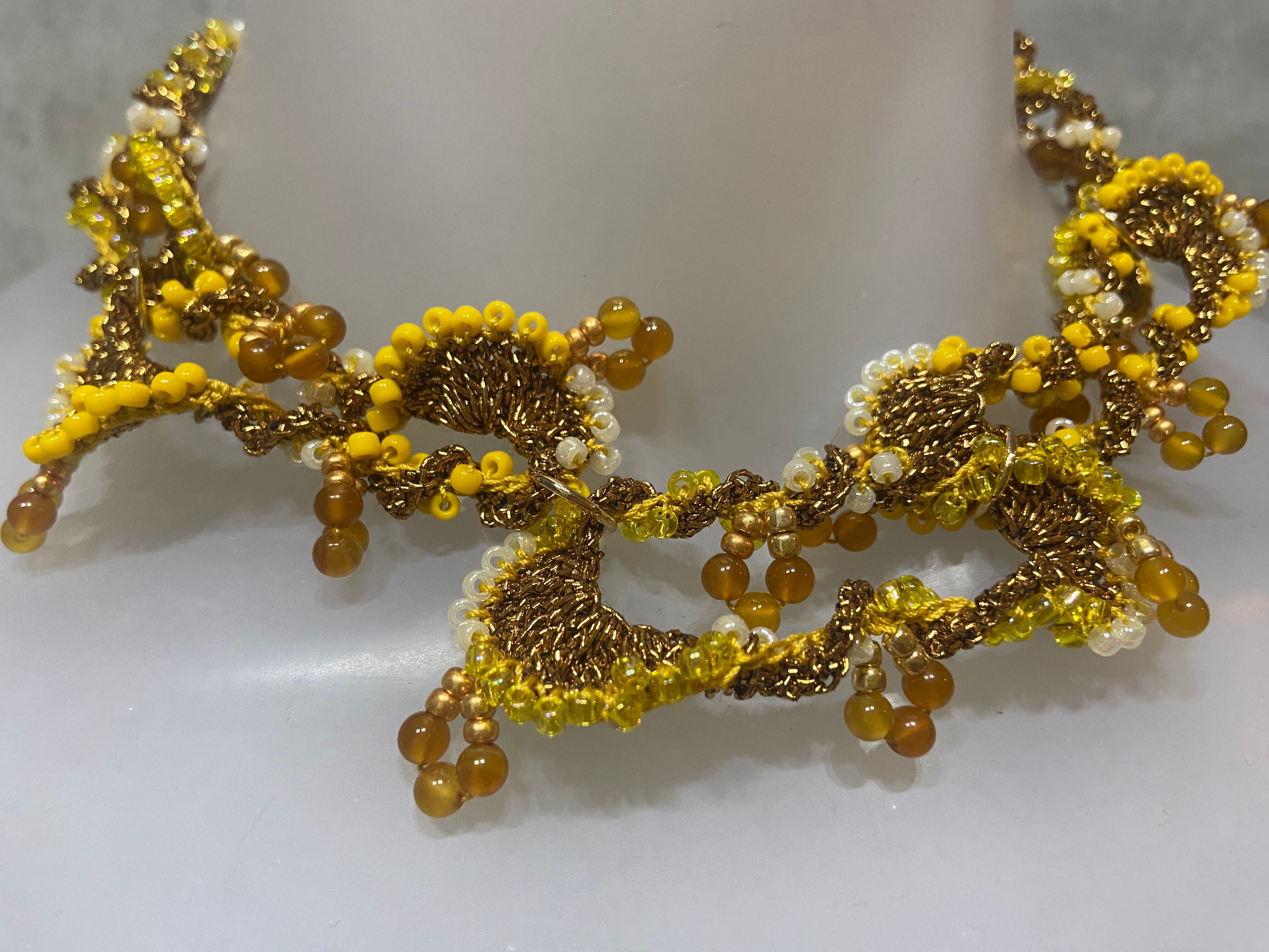 メビウスの輪の様に連続した捻りが美しい歪みをもたらせたビーズ編みのネックレス/チョーカーです。