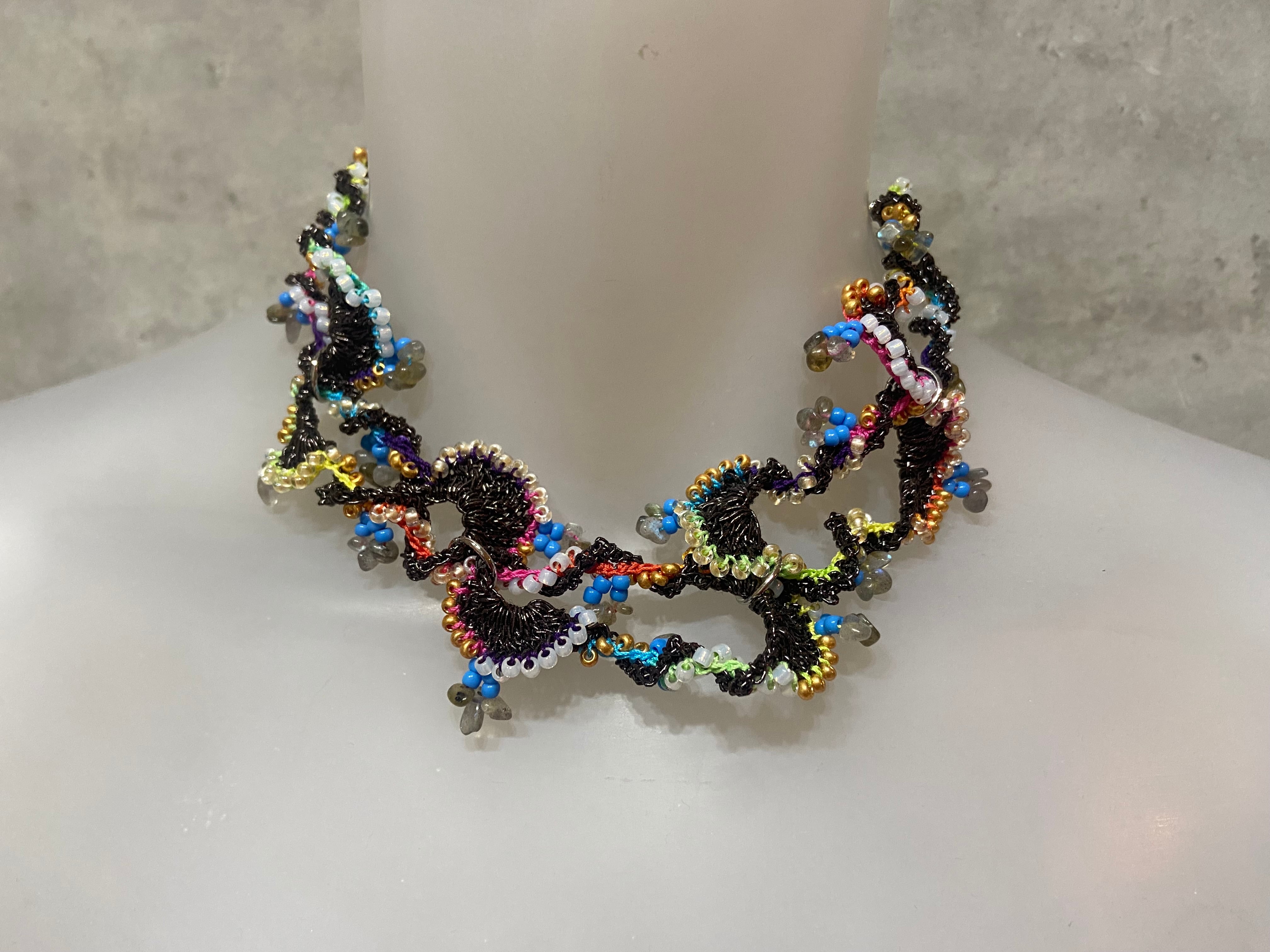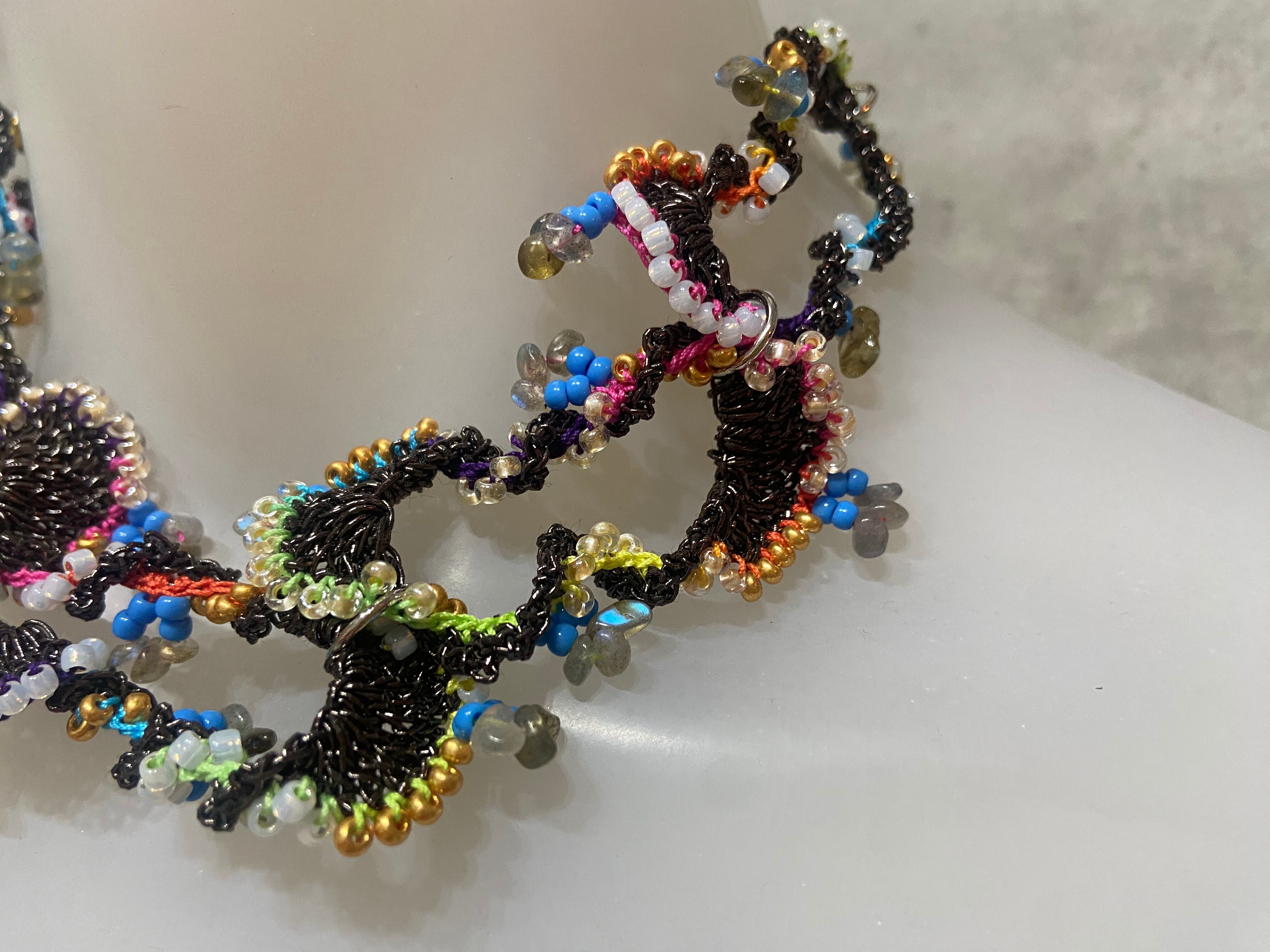 メビウスの輪の様に連続した捻りが美しい歪みをもたらせたビーズ編みのネックレス/チョーカーです。