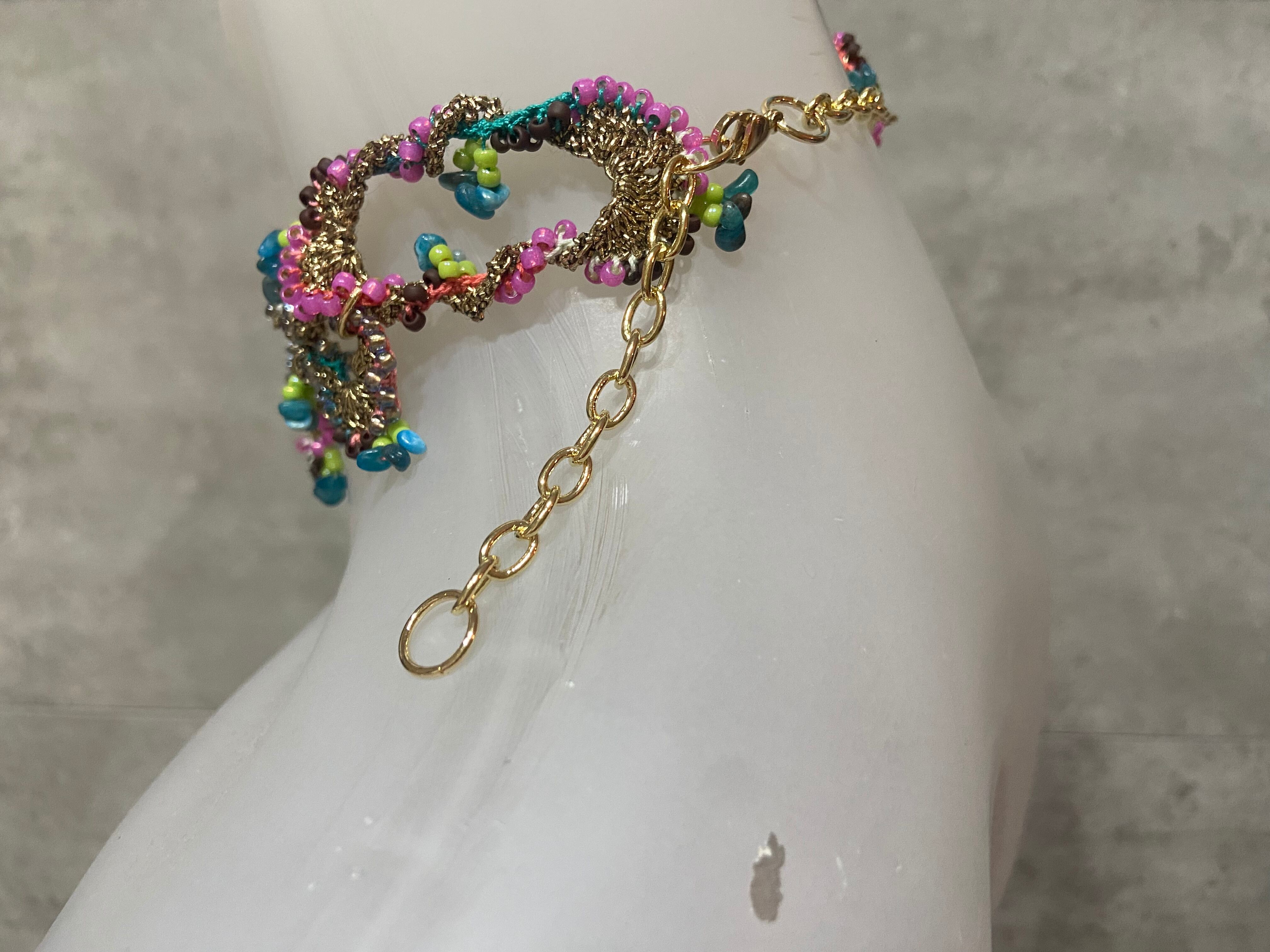メビウスの輪の様に連続した捻りが美しい歪みをもたらせたビーズ編みのネックレス/チョーカーです。