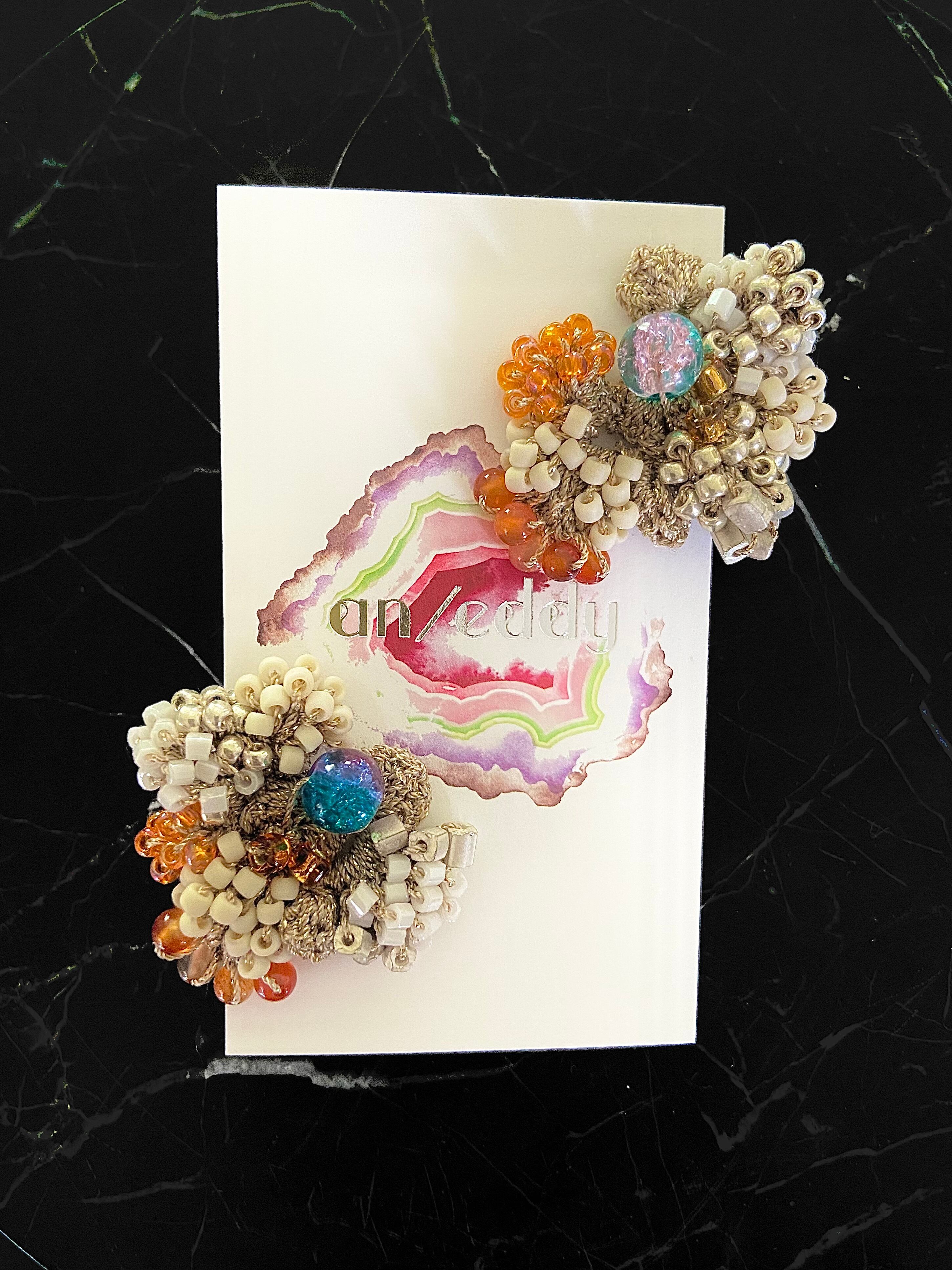 【カーネリアン】耳に咲く花ゴールドラメペア