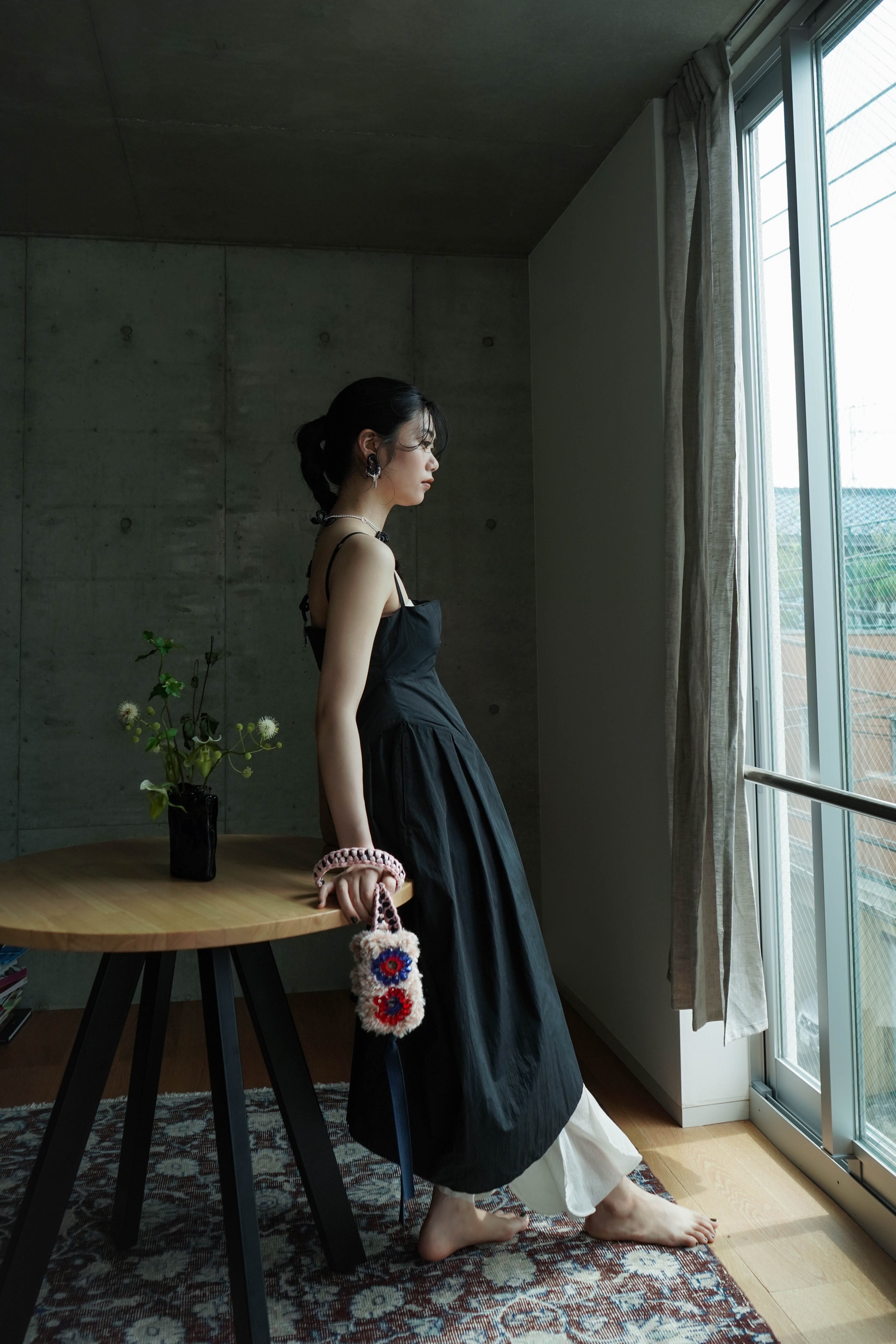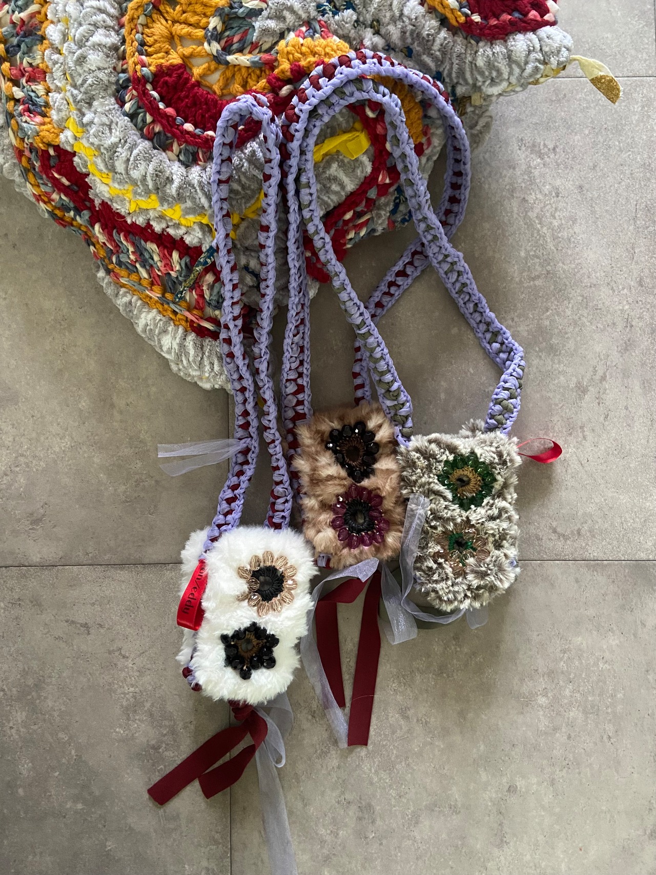 【organdy&ecofur】グリーン×ベージュKnitted beads pochette