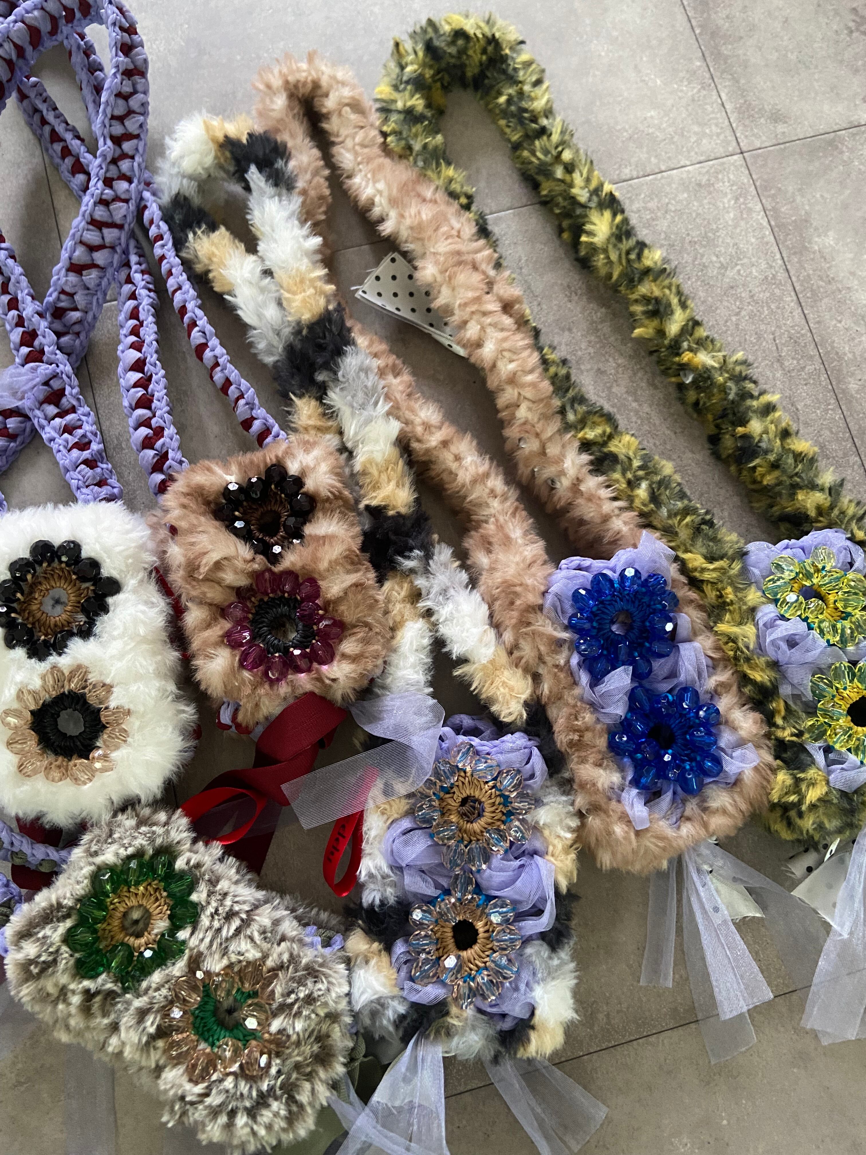 アクリルビーズ/オーガンジーリボン/和紙糸/コットン糸/エコファー/グログランリボン