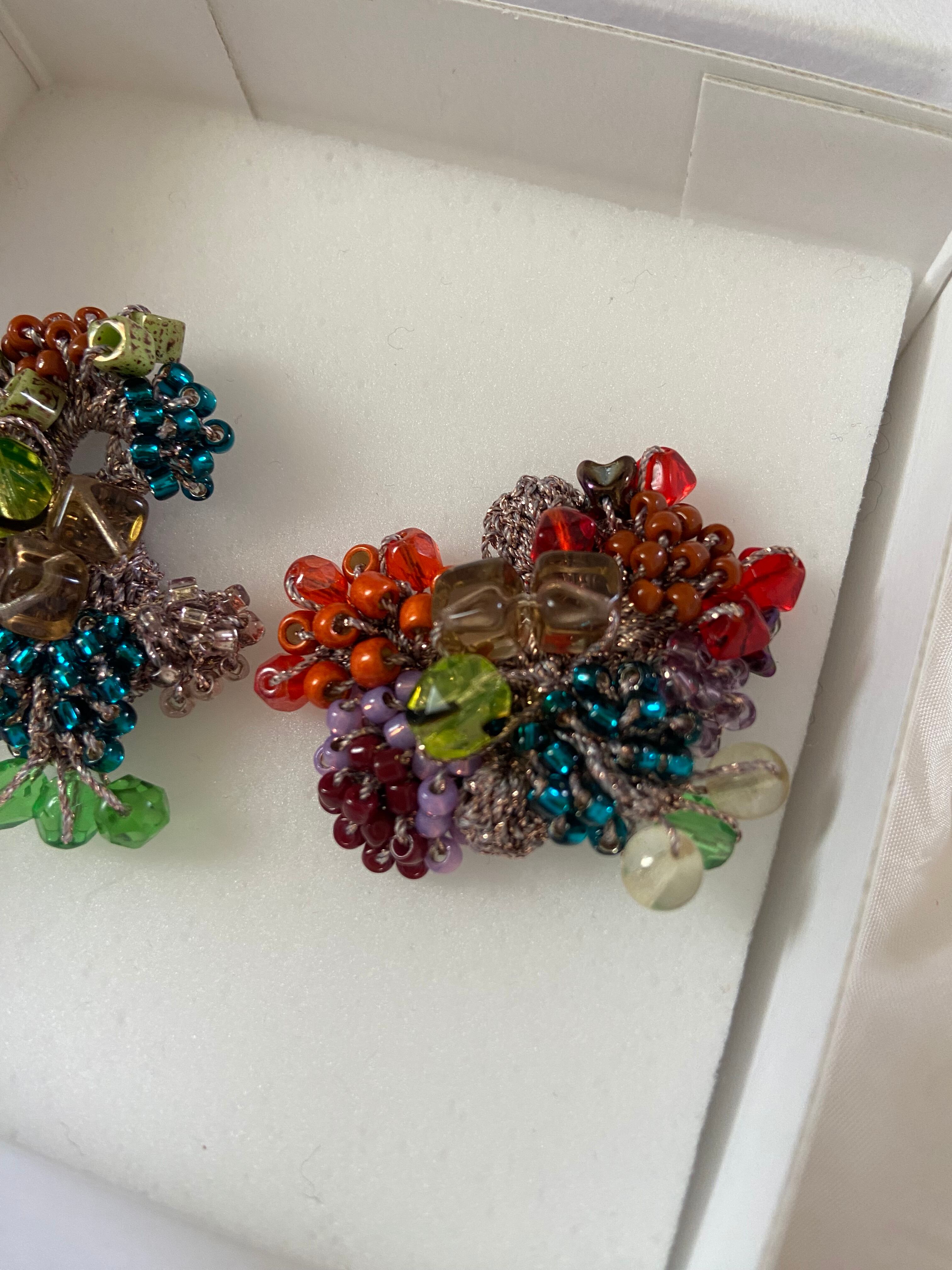 こちらの一点は蓮沼が保有していたヨーロッパアンティークビーズを編み合わせ制作しました。
