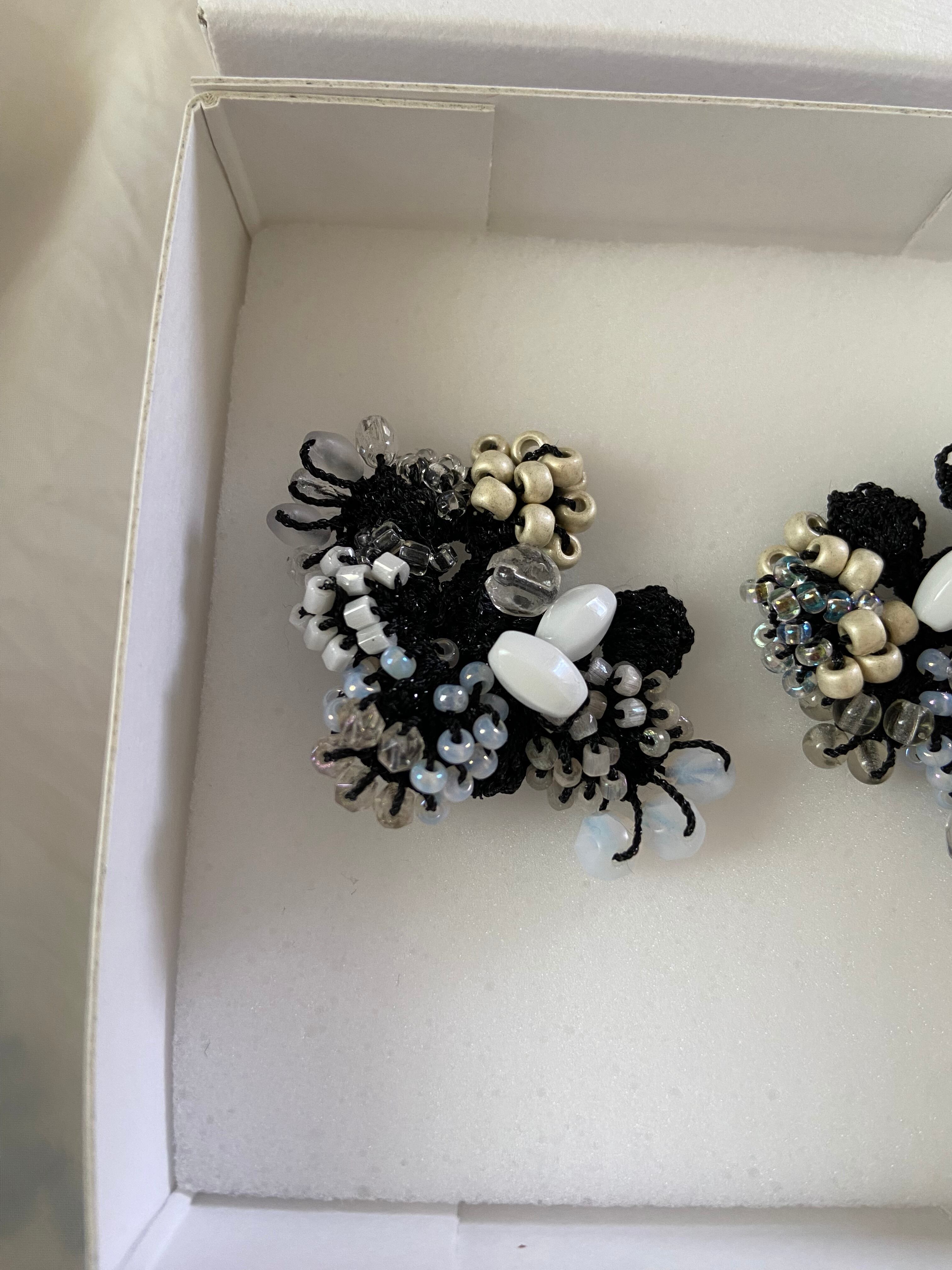【ヨーロッパアンティークビーズ】耳に咲く花ラメペア