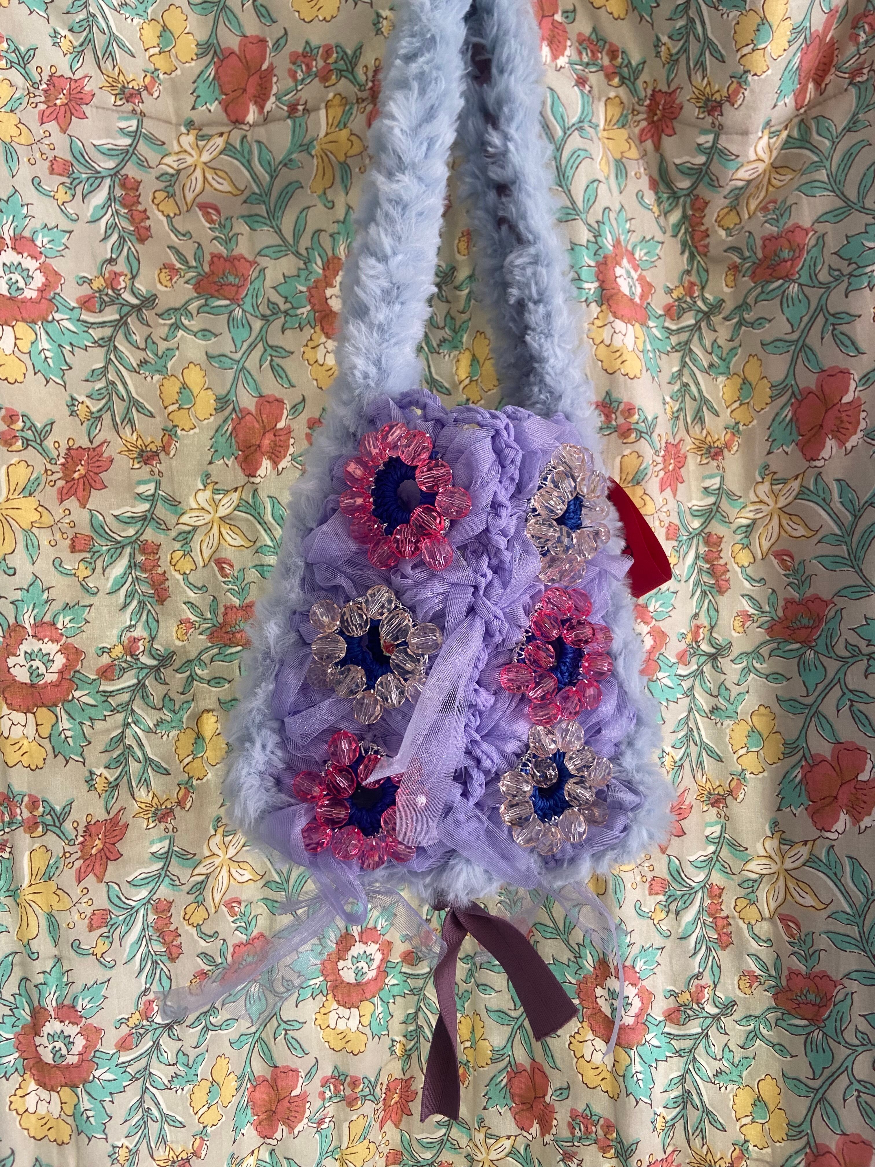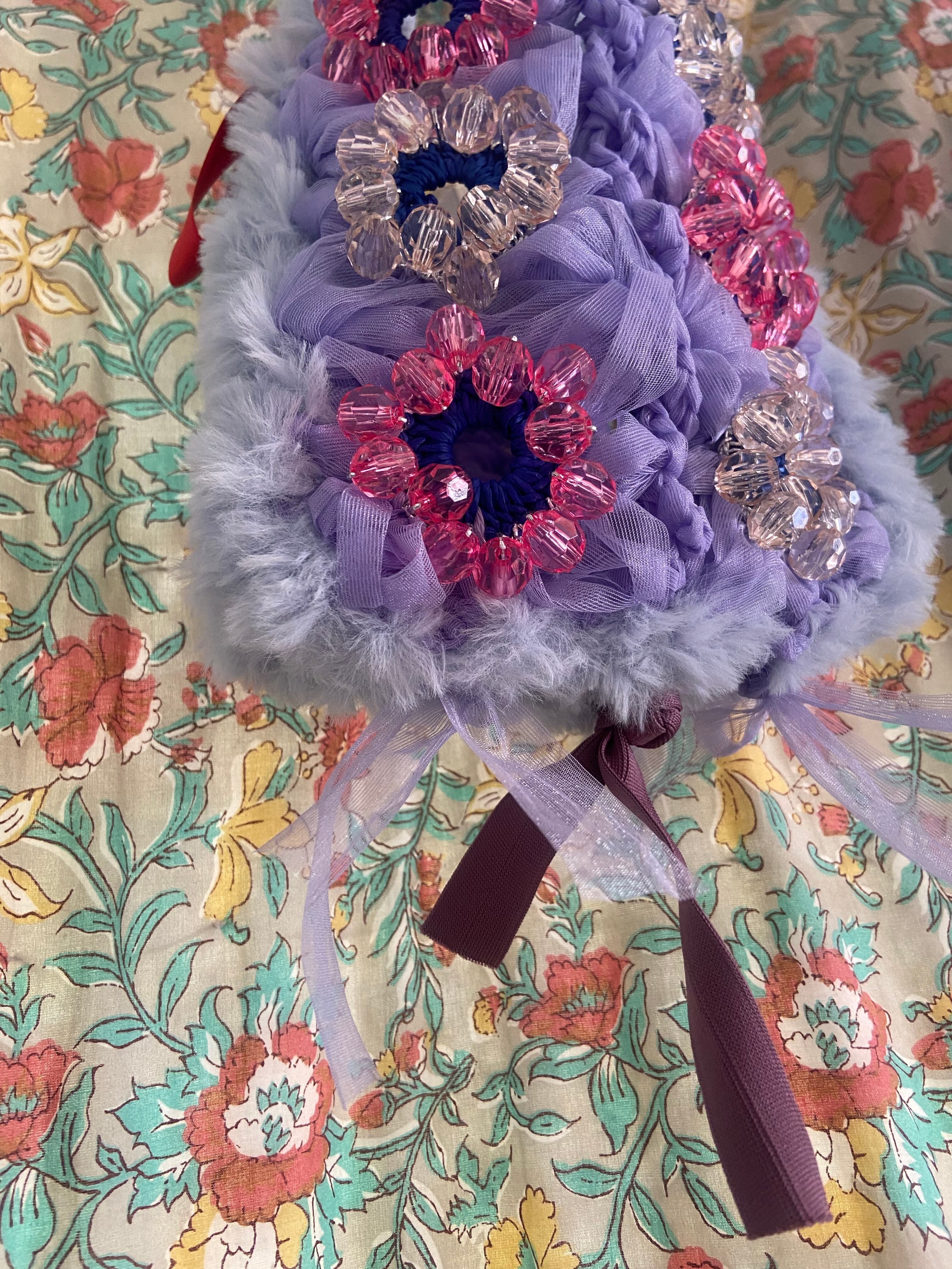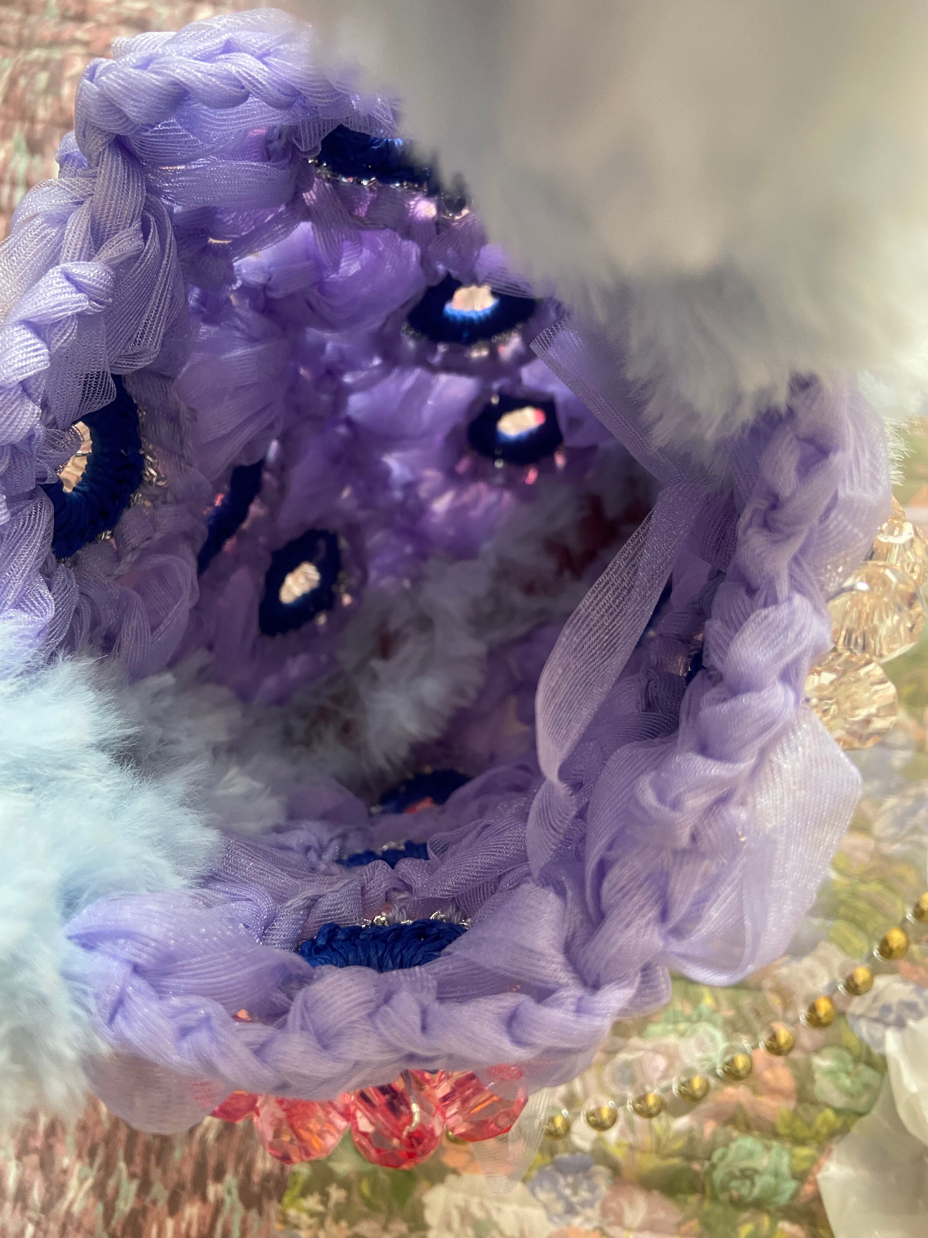 【Tulle ribbon&eco fur】Knitted beads BOX bag